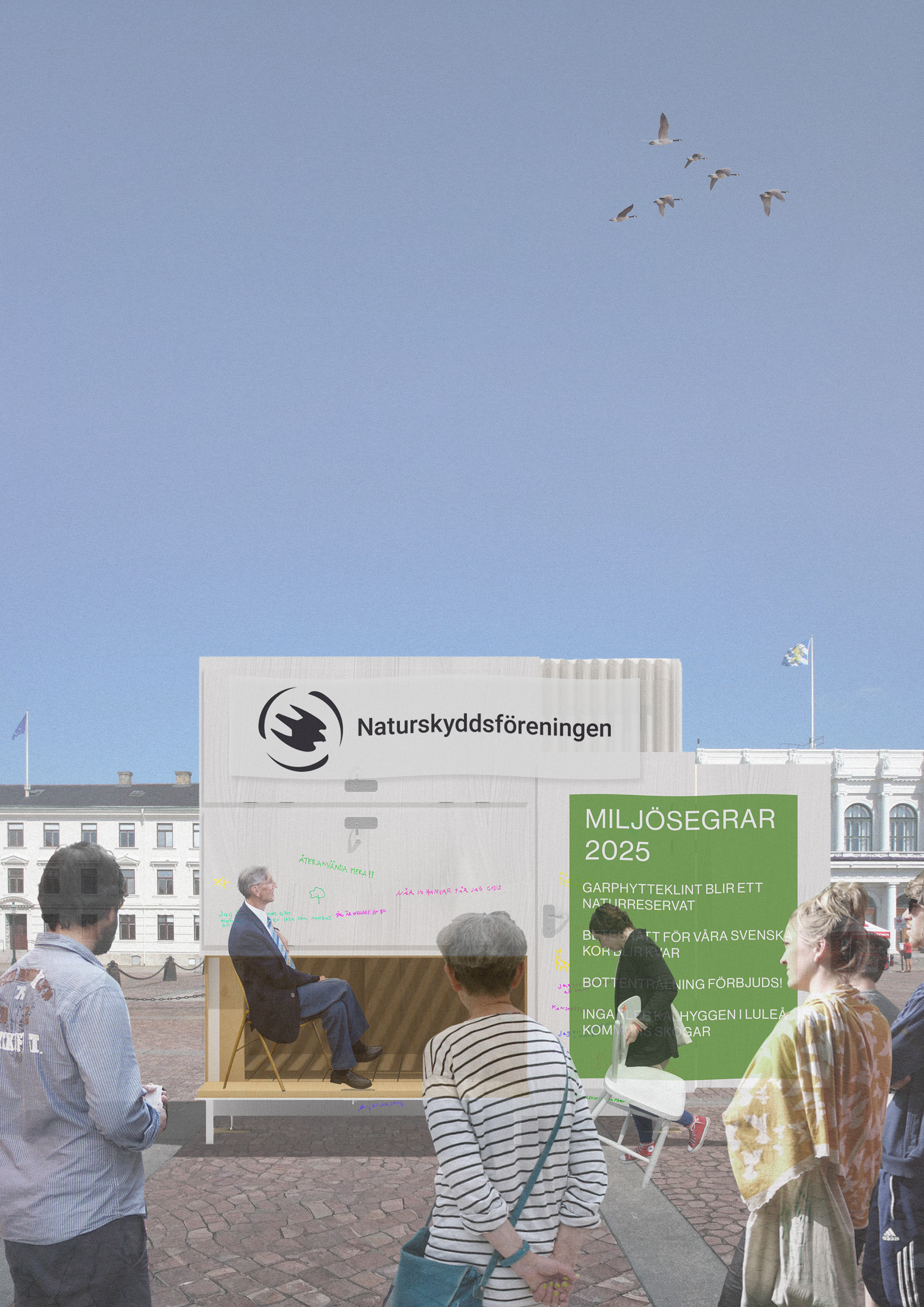 The door itself is a powerful symbol of change, choice, security, and identity. While the pavilion is active, children and young people will be invited to write their thoughts on the climate directly onto the doors. It becomes a cube voicing the concerns of the younger generation regarding the crisis threatening their future. In this way, the pavilion itself becomes an active participant in the discussion.